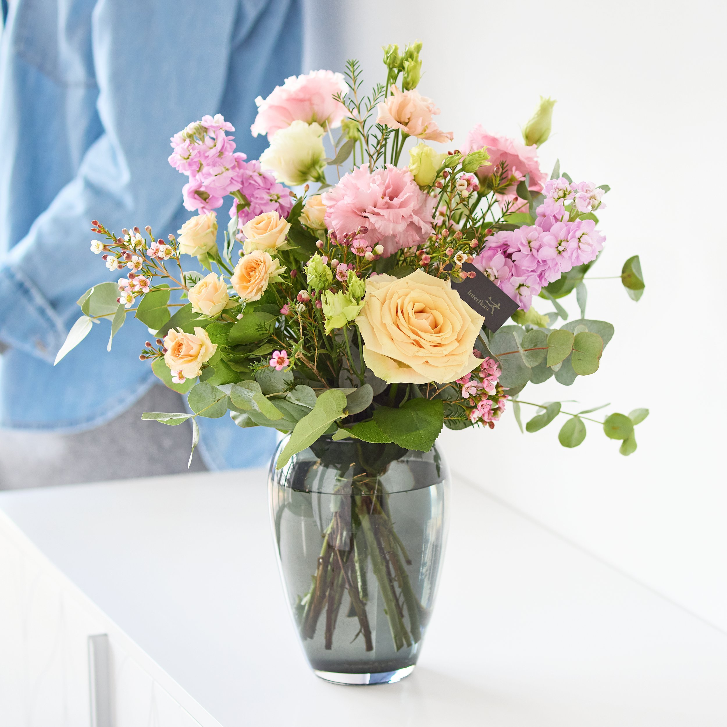 - Hand-tied flowers perfectly pre-arranged and delivered in a stylish vase
